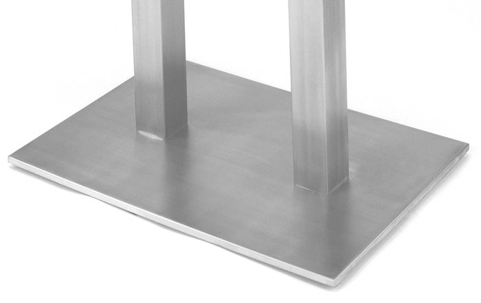 This stainless steel table base is recommended for table top sizes up to 30″ by 48″ diameter! The two 3″ diameter columns make this a very stabil base for large, heavy granite table tops! This column table base is made from 304 grade stainless steel, which is used for Food processing surfaces, Restaurant and Hospital equipment. Clean and durable tables for many applications. Perfect fit for granite tops and any outdoor application! We can cut this to your custom height!